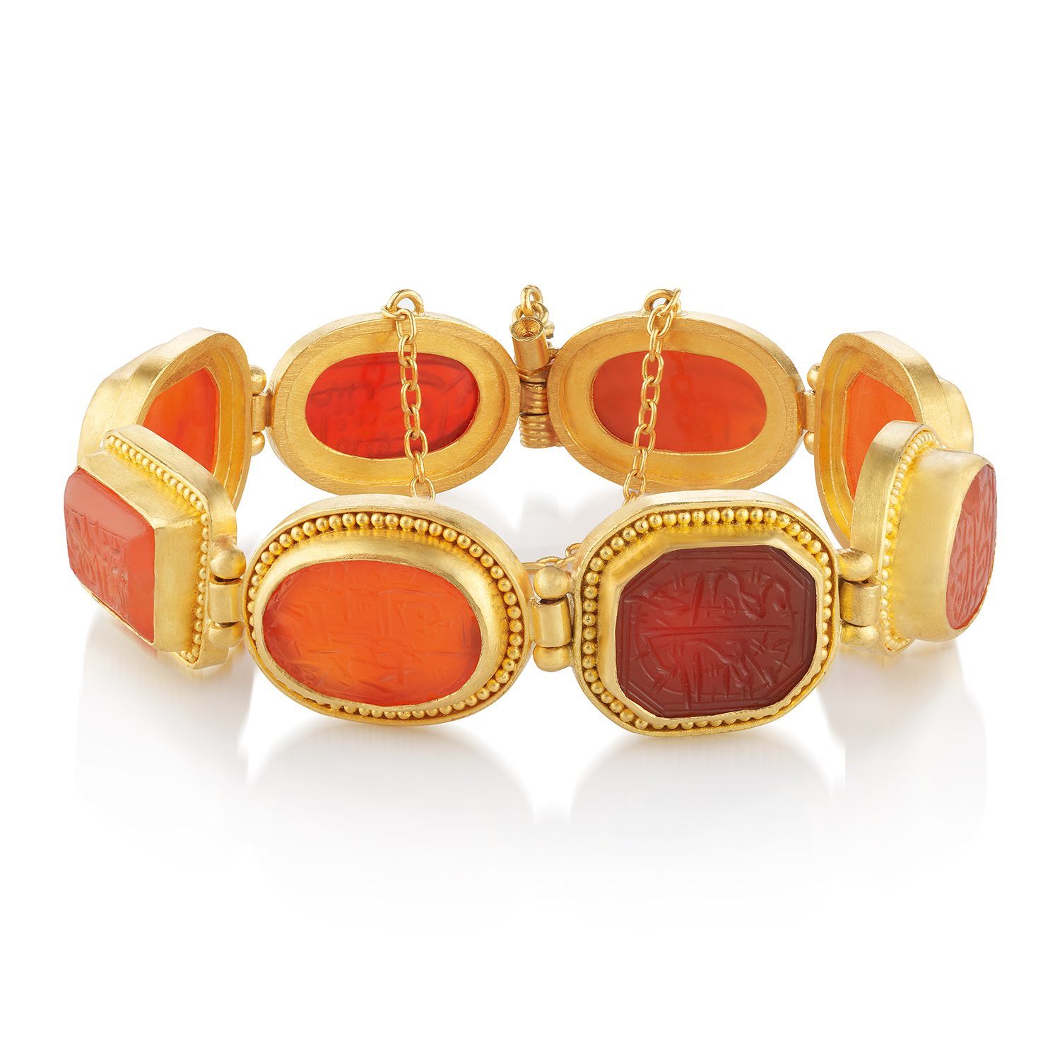 Completely Handcrafted 24 Karat Pure Gold Bracelet with Agate Stamps.