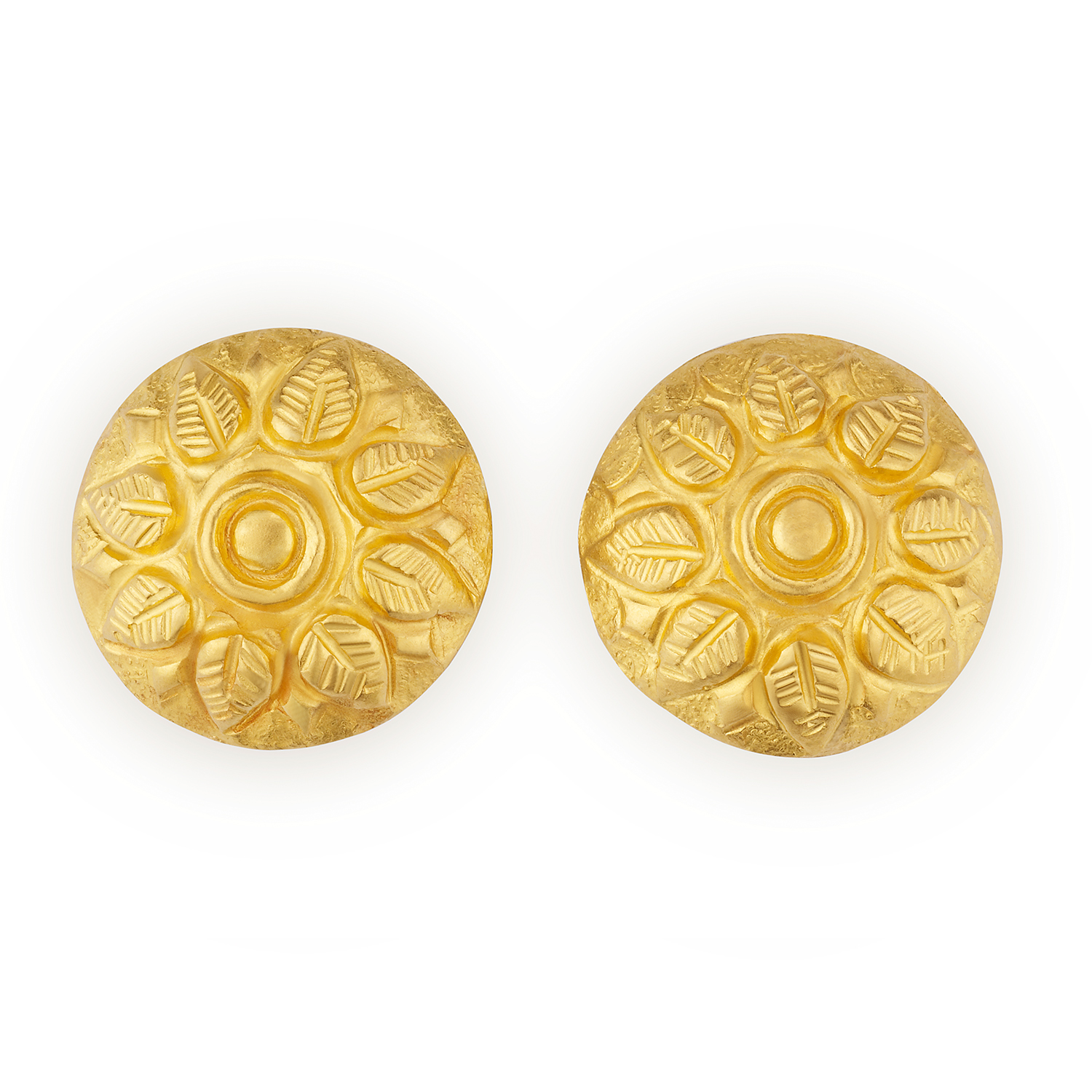 Completely Handcrafted 24 Karat Pure Gold Pinned Earrings .
