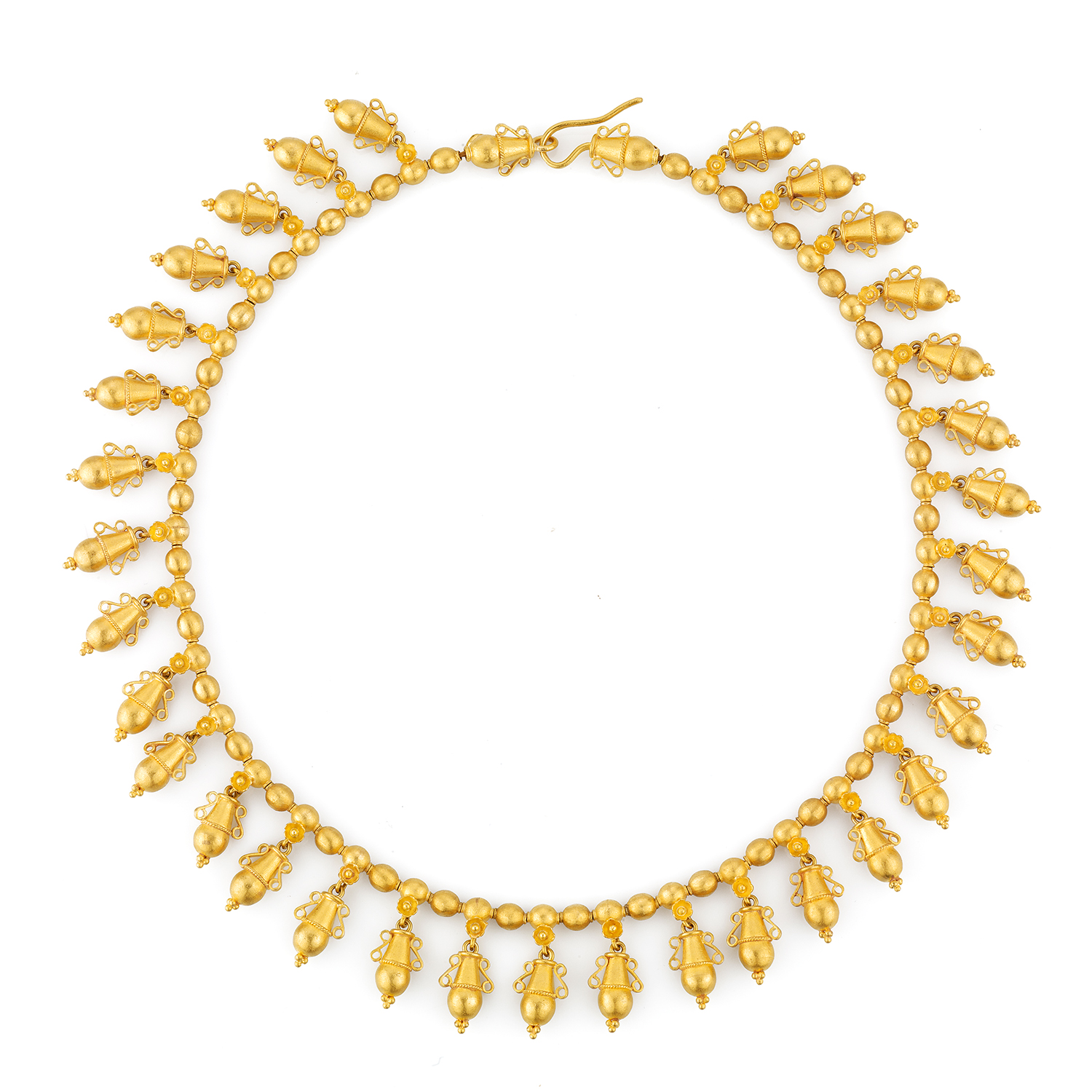 SPECIFICATION:Completely Handcrafted 24 Karat Pure Gold Hellenistic Necklace Decorated with Fringes Linked to its Hand-Woven Chain.