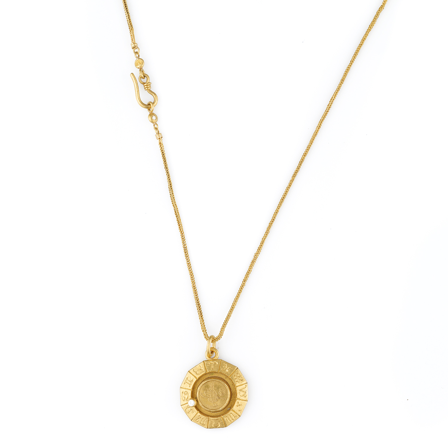 SPECIFICATION:Completely Handmade 24 Karat Pure Gold Horoscope Pendant Decorated with Diamond and its Hand-Woven Chain.