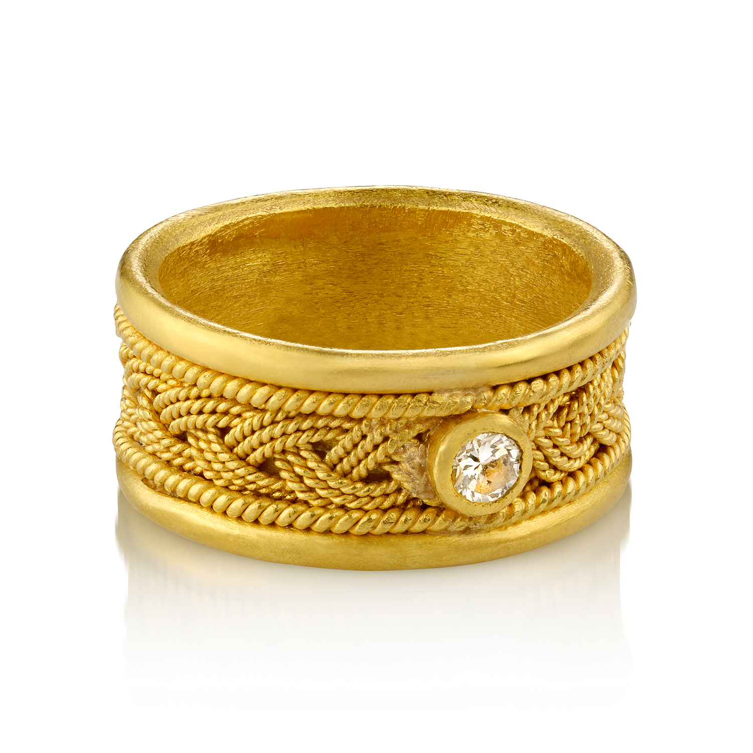 SPECIFICATION: Completely Handmade 24 Karat Pure Gold Ring Decorated with Filigree and Fine Quality Diamond